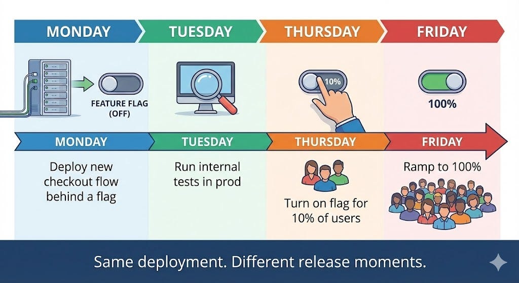 Monday: deploy new checkout flow behind a flag