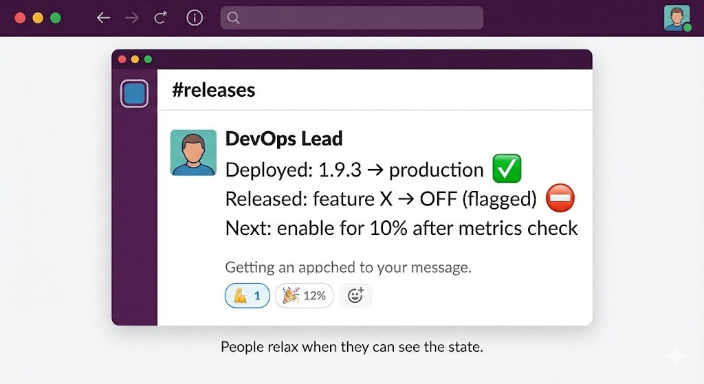Released: feature X → OFF (flagged) ⛔